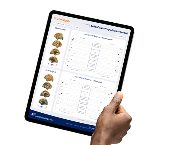 CDM Insights unlocks the power of microstructure and provides clinicians with a complete assessment of brain changes. CDM Insights measures microstructural change in the cerebral cortex, providing clinicians with accurate and detailed insights for both early detection and ongoing monitoring.